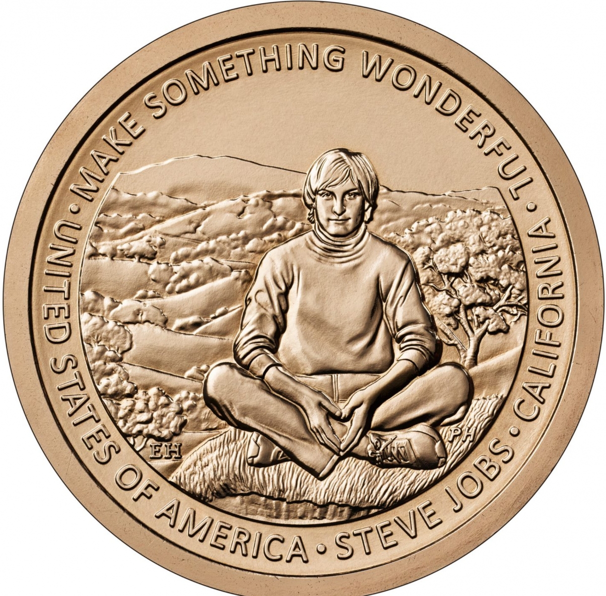 Excentricul CEO este înfăţişat în tinereţe, stând pe iarbă în faţa unui peisaj californian. Monetăria SUA a anunţat că programul American Innovation $1 Coin din 2026 va onora inovaţiile şi inovatorii din state americane precum Iowa, Wisconsin, California şi Minnesota. Mai sunt sărbătoriţi şi Dr. Norman Borlaug, laureat al premiului Nobel pentru revoluţionarea agronomiei, dar şi supercomputertul Cray-1.