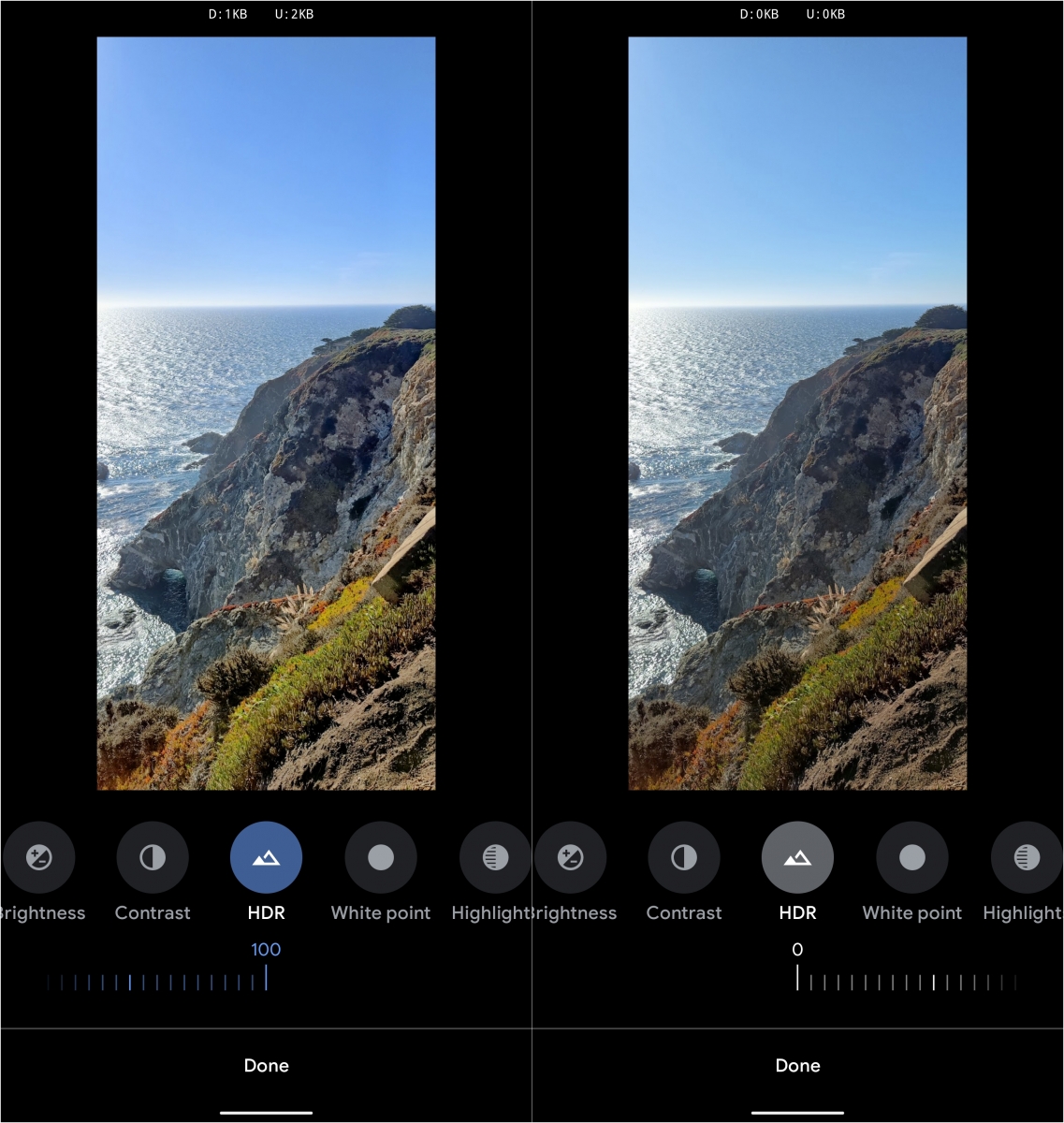 Pare însă doar un filtru aplicat peste fotografii și nu o funcție de ajustare a nivelurilor HDR propriu-zisă. De asemenea, acest efect funcționează și pe screenshot-uri sau alte imagini. Totuși, funcția pare utilă întrucât oferă un impuls de luminozitate în timp ce păstrează secțiunile mai întunecate ale fotografiilor. Noua opțiune HDR este disponibilă momentan doar pe telefoanele Pixel.