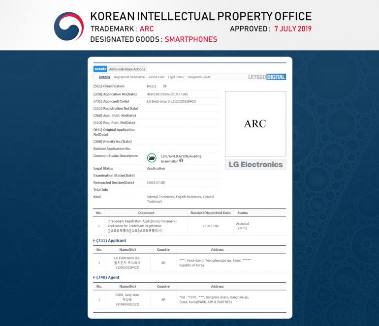 LG a brevetat de ceva vreme propriile variante de telefoane pliabile, propunând telefoane rulabile sau unele clamshell verticale. Azi apar şi nume înregistrate în Coreea de Sud pentru aceste terminale, LG Arc şi şi LG Folds. Nu avem încă un indiciu concret şi dacă se vor lansa aceste handseturi, deci ne orientăm doar după scăpări.