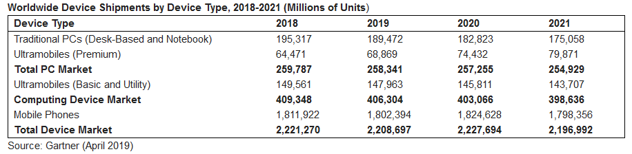 Pliabilele ar urma să ajungă la o cotă de piaţă de 5% din zona smartphone-urilor high end până în 2023. Gartner mai estimează şi că PC-urile vor cunoaşte un ciclu de retragere, dar nu şi de înlocuire. Cât despre pliabile, ele ar trebui să ajungă la 30 de milioane de unităţi vândute în 2023. Experţii se aşteaptă ca utilizatorul să folosească un telefon pliabil cum face cu unul normal, deblocându-l de zeci, dacă nu sute de ori pe zi şi scriind pe ecran, pliindu-l la loc şi punându-l în buzunar.