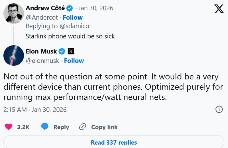 Dorinţa este de a „rula reţele neuronale la performanţă maximă pe watt”, pentru acest device. Telefonul Starlink va fi avansat la capitolul eficienţă energetică, pentru a procesa local sarcinile AI. Nu va fi doar un combo clasic de camere, aplicaţii de socializare, CPU şi GPU pentru gaming. Posibil şi că telefonul să fie orientat DOAR spre utilizarea prin Starlink şi nu prin reţelele clasice.