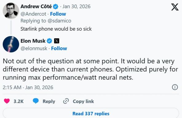 E vorba despre un telefon Starlink axat pe inteligența artificială, un dispozitiv optimizat pentru a atinge performanțe maxime în reţeaua satelitară Starlink. Vrea să ofere publicului ceva „foarte diferit” faţă de modelele actuale şi orientat spre AI. Aceste detalii au apărut pe reţeaua de socializare X, pe 29 ianuarie, spusele aparţinând lui Musk însuşi.