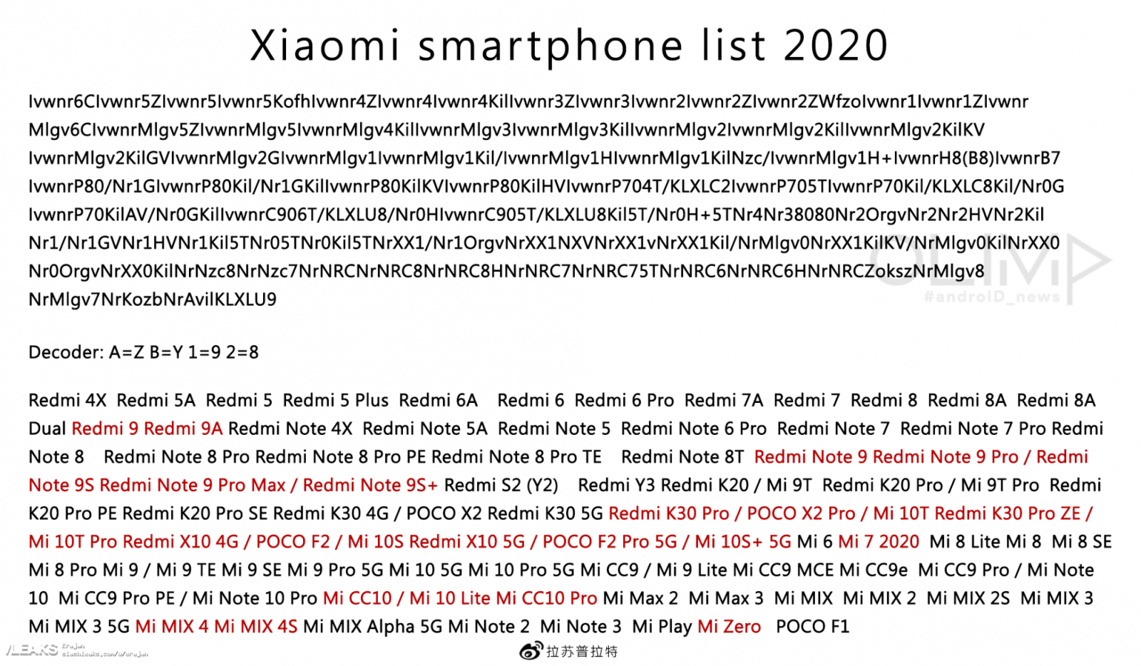 Aceste scăpări au provenit de la o scrisoare criptată primită de către un angajat Xiaomi. Trebuie să vă atragem atenţia că nu avem garanţia că lista este 100% reală, deci putem vedea schimbări, mai ales în contextul Covid-19. Să trecem deci la listă: