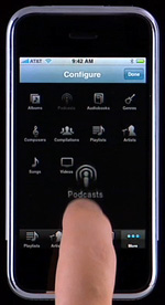 Una dintre trasaturile cele mai apreciate de utilizatorii unui iPod a fost capacitatea de a isi customiza meniurile principale. In cazul iPhone, istoria se repeta, iar cele 4 butoane din partea inferioara a ecranului, in modul iPod pot fi schimbate mutand optiunile in acea pozitie prin drag&drop. Astfel, daca ascultati numeroase Podcasturi, de exemplu, puteti face drag&drop cu unul dintre acestea catre pozitia butonului "Filme" pentru a obtine o noua optiune standard.