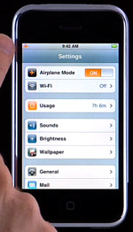 Ecranul cu optiuni, prezentat pentru prima oara in turul video, arata ca iPhone are un buton destinat sigurantei in timpul zborului cu avionul. Apasati-l si functionalitatile Bluetooth si Wi-Fi ale terminalului vor fi dezactivate. De asemenea in cadrul clipului au fost prezentate si o serie de ringtone-uri ale telefonului, 24 in total.