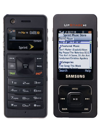 Samsung UpStage de la Sprint este fara indoiala un telefon subtire, cu un design ce va va intriga. Totusi ne intrebam daca nu va deveni obositoare utilizarea acestui flip-phone din cauza designului sau. Incorporand un player pentru muzica, care deja este arhi-folosit pe telefoanele Sprint, terminalul ar fi putut macar sa foloseasca o noua interfata pentru a concura pe piata aglomerata a telefoanelor cu functii muzicale. Totusi UpStage are o sansa prin downloadurile de melodii pe care le ofera in cadrul Sprint Store la pretul de 0.99 dolari.