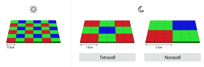 Atunci când creşte numărul de pixeli adiacenţi combinaţi pot apărea interferenţe de culoare, dar Samsung a rezolvat asta cu ajutorul tehnologiei ISOCELL Plus. Aceasta reduce fenomenul de crosstalk şi scade pierderile optice, dar şi reflecţiile. Samsung a mai integrat aici şi tehnologia Smart ISO, care selectează valoarea ISO ideală pentru fotografie, generând capturi viu colorate şi expresive. O altă noutate este tehnologia Real Time HDR, utilă când ai condiţii mixte de fotografiere: lumină puternică + zone întunecate.