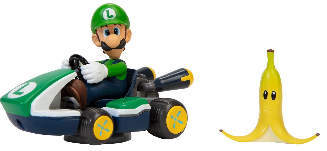 - Cadou pentru cel mic: Maşinuţe Nintendo MarioKart - Luigi, Banana, 6 cm: 101 lei