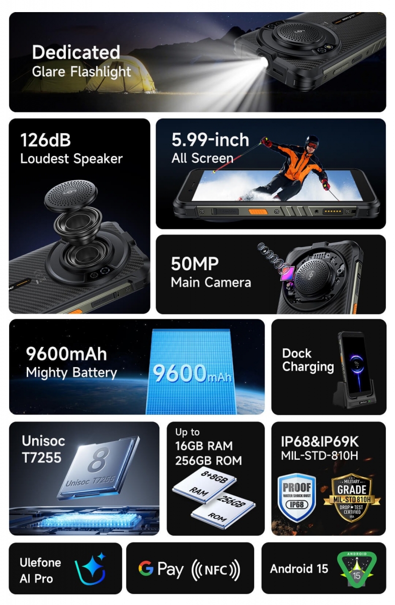Ulefone tocmai a lansat RugKing, un nou smartphone robust, gândit special pentru cei ce lucrează în medii dure sau au un stil de viață activ. E destul de accesibil, iar interesant în cazul său e că oferă un difuzor de 126 dB, o lanternă puternică și baterie de 9600 mAh ce se încarcă rapid. Mai jos avem detalii!