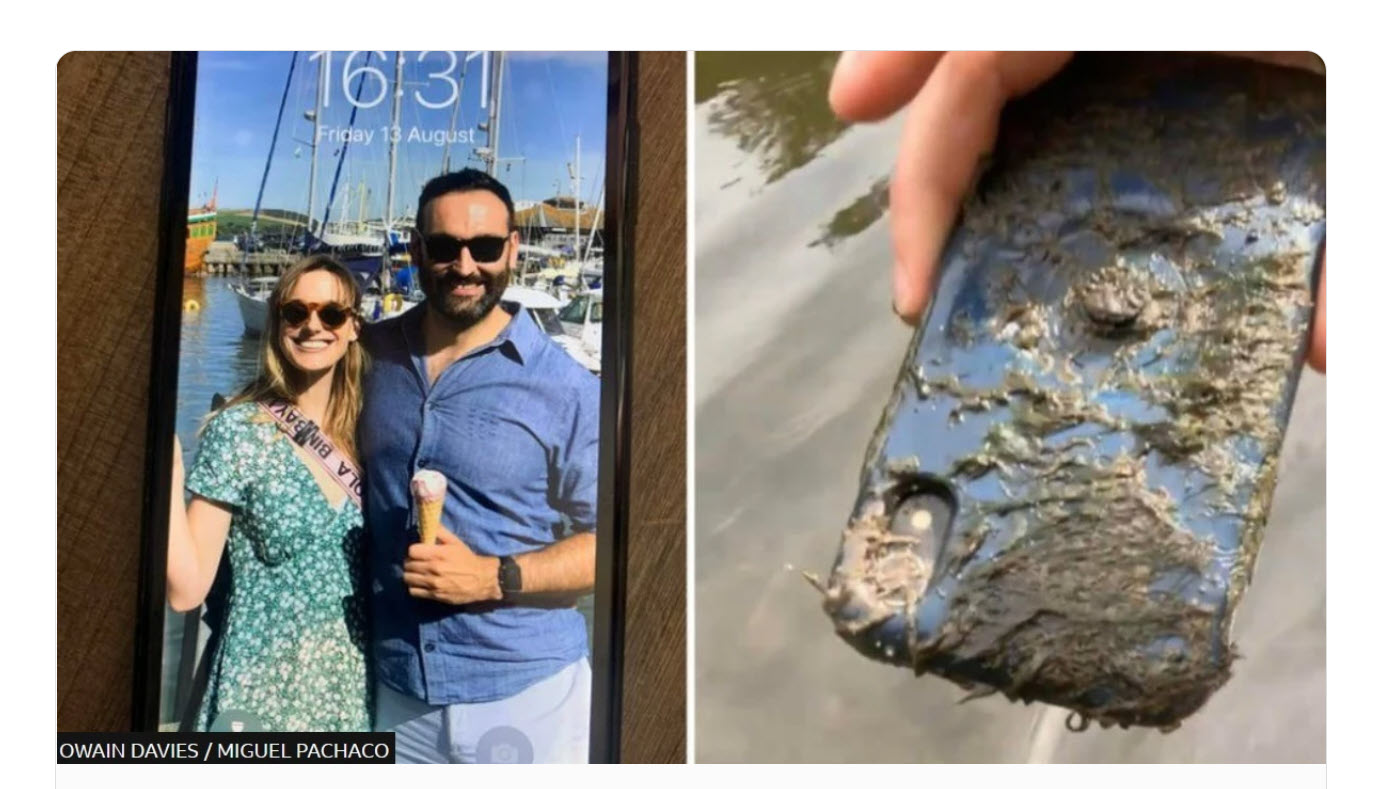 În august 2021 posesorul de iPhone, Owain Davies şi-a scăpat telefonul în vreme ce ieşise la o sesiune de caiac pe râul Wye din Gloucestershire, Marea Britanie. Davies a considerat telefonul pierdut şi a cumpărat altul. BBC scrie totuşi că la începutul lunii iunie 2022, un alt domn pe numele său Miguel Pacheco a fost la caiac cu familia în aceeaşi zonă şi a găsit telefonul pierdut. El credea că e o unitate moartă, mai ales era plină de apă, nămol, vegetaţie.