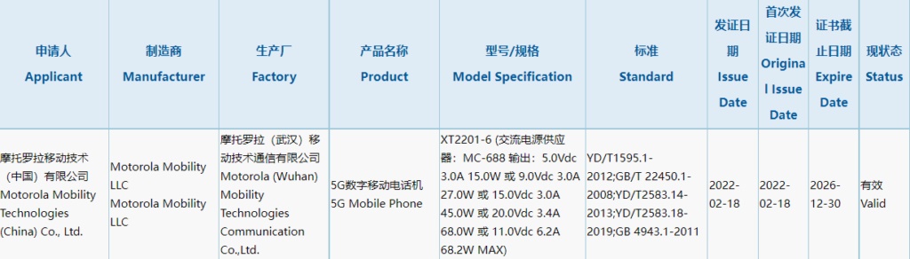 Telefonul în cauză apare cu numărul de model XT2201-6 și potrivit listării, el suportă alimentare rapidă la 68W pe fir, asemeni variantei Edge 30 Pro. Merită menționat că varianta Pro apărea în scăpări cu numărul de model XT2201-2, de aici și asocierea cu noua serie flagship a celor de la Motorola. E posibil deci să vorbim despre un eventual Edge X30 Ultra, poate chiar o variantă rebranduită la nivel global a modelului Motorola Frontier, care și-a făcut recent apariția pe web.