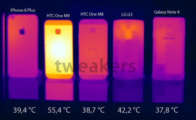 Site-ul olandez Tweakers a pus mâna pe handset şi l-a trecut printr-o serie de teste ce dovedesc că problemele cu supraîncălzirea provocate de procesorul Snapdragon 810 nu sunt doar cazuri izolate. Atunci când HTC One M9 rula GFXBench, scannerul termic a arătat o temperatură maximă de aproximativ 55 de grade Celsius la suprafaţă handsetului, cu mult peste cele de 40+ grade pe care le ating handseturile testate de noi. Şi în acele cazuri, de obicei le acuzăm de supraîncălzire.