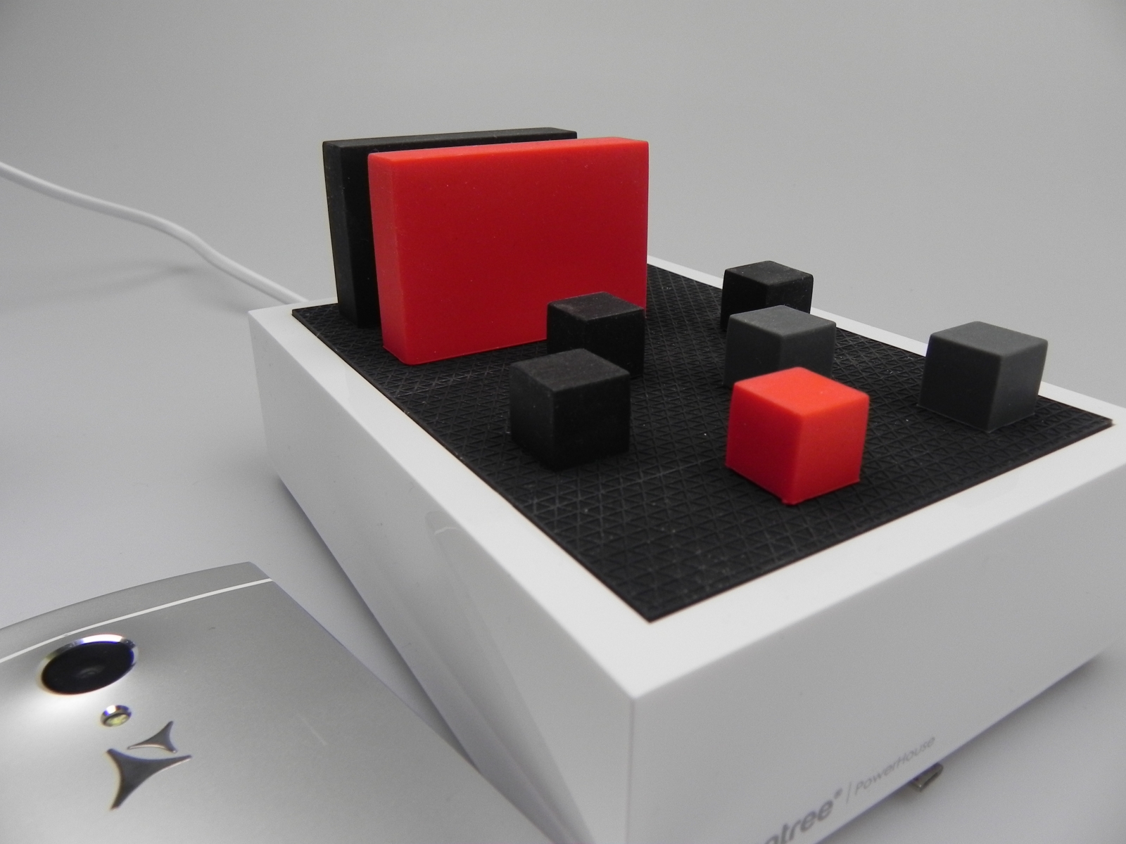 Tot în pachet găsim și 2 cabluri microUSB și un cablu AC, cu care se alimentează dockul. Gadgeturile, precum tablete, telefoane, MP3 playere îs chiar și headseturi Bluetooth sunt sprijinite pe o serie de pătrățele speciale, care le proptesc înclinate și aliniate. Revenim în curând cu o recenzie și cu timpii de încărcare testați! [FORUM]