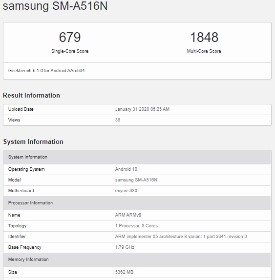 Cu aproximativ două săptămâni în urmă auzeam sub forma unui zvon faptul că sud-coreenii de la Samsung iau în calcul posibilitatea de a lansa o variantă 5G a lui Galaxy A51, telefonul de nivel mid-range care se vinde și la noi de puțin timp. Astăzi, descoperim o listare din GeekBench a modelului Samsung SM-A516N care ar fi fix cel 5G vehiculat anterior la început de an.