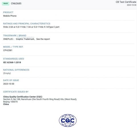 Varianta globală a telefonului poartă numărul de model CPH2581 și apare în baze de date precum IMDA, TDRA și mai nou CQC. Cea din urmă certificare atestă faptul că flagship-ul va primi alimentare rapidă la 100W pe fir. Asta înseamnă că nu vor exista diferențe la acest capitol față de varianta ce va debuta în China.