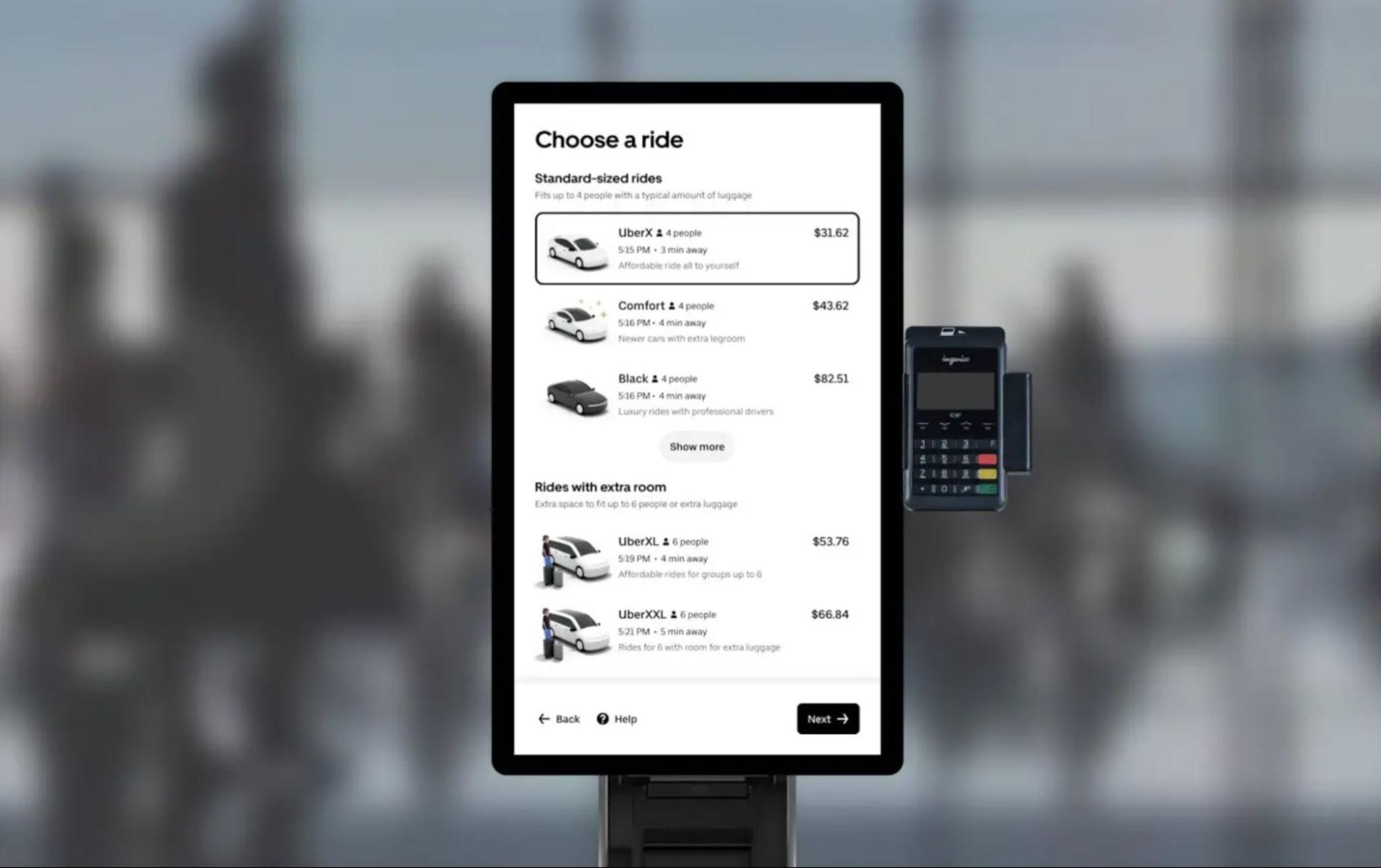 Uber a început instalarea de terminale pentru rezervarea curselor, iar programul pilot se desfăşoară pe aeroportul LaGuardia din New York. Compania s-a gândit şi la pasagerii al căror roaming nu funcţionează încă pentru a putea comanda o cursă până la hotel de exemplu. Sau dacă telefonul le-a fost pierdut, a murit bateria sau a fost furat.