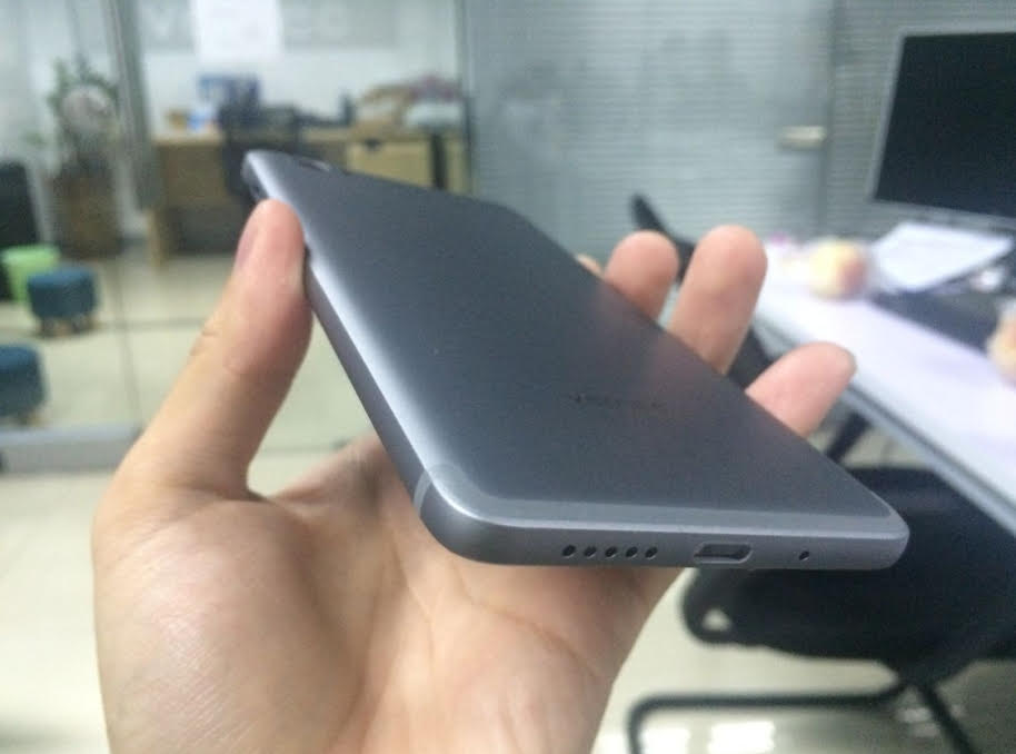 Terminalul pare destul de subţire, dar nu îl judecăm prea mult, în ideea că aceasta e doar o parte a carcasei. Cameră, blitzul şi alţi senzori nu sunt montaţi încă şi nu ştim dacă acest modul foto va ieşi în relief. Terminalul pare să aibă muchii curbate in spate, port USB Type C şi difuzor în zona inferioară. Totul e perfect aliniat cu scăpările trecute, iar device-ul apare pe acelaşi gri argintiu.