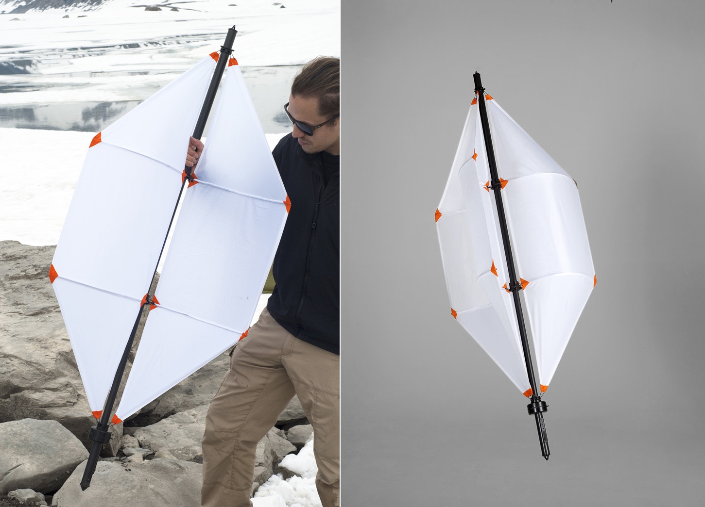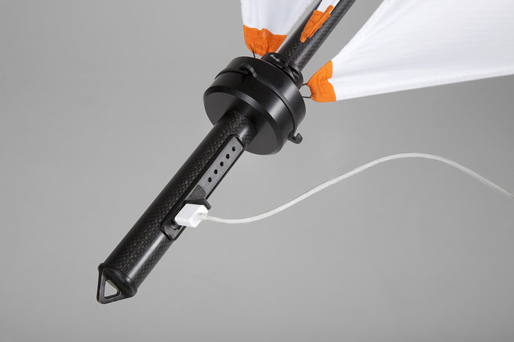Arătând ca un soi de zmeu combinat cu o lampă din aceea zburatoare din hartie, cum se lansează la unele festivaluri, această turbină portabilă e uşor de transportat în rucsac. Are palete şi un ax central perfect pliabile şi se va roti în bătaia vântului foarte uşor, generând electricitate. Panourile solare depind foarte mult de vreme, de soare şi necesită mult timp pentru a încărca o baterie de smartphone sau laptop.