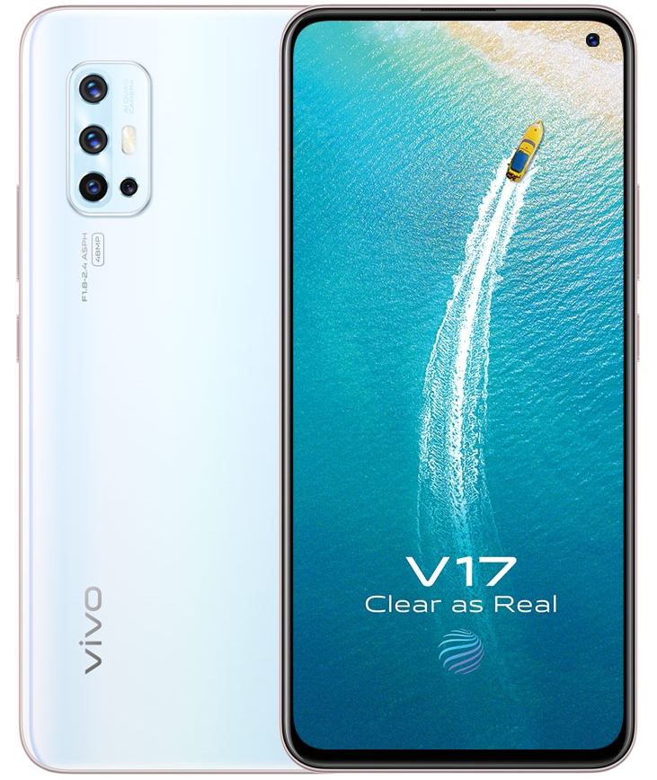 Vivo V17 (India) mai aduce scanner de amprente integrat în display, baterie de 4500 mAh cu alimentare la 18W și o cameră quad în spate cu următoarea componență: 48 mpx (IMX582, f/1.78, EIS) + 8 mpx (ultra-wide) + 2 mpx (bokeh) + 2 mpx (macro). Avem slot dual-SIM, Bluetooth 5.0, port USB-C și jack audio 3.5 mm.