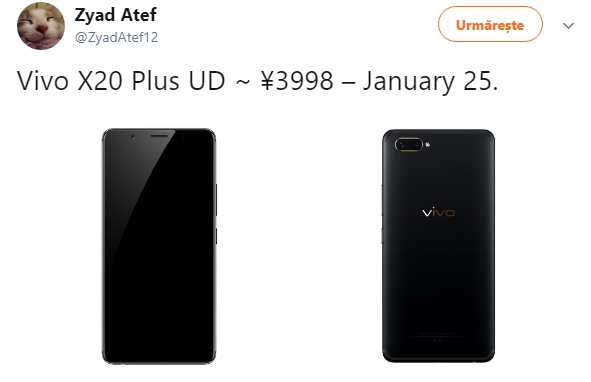 Dacă până acum știam faptul că primul smartphone cu scanner de amprente integrat în display va sosi comercial până la finalul lunii, iată că astăzi aflăm exact ziua în care se va întâmpla acest debut. Potrivit leaker-ului Zyad Atfe de pe Twitter, lansarea acestui telefon deosebit numit Vivo X20 Plus UD va avea loc pe data de 25 ianuarie și vorbim aparent despre un dispozitiv ce va fi vândut la un preț destul de piperat de 625 dolari.