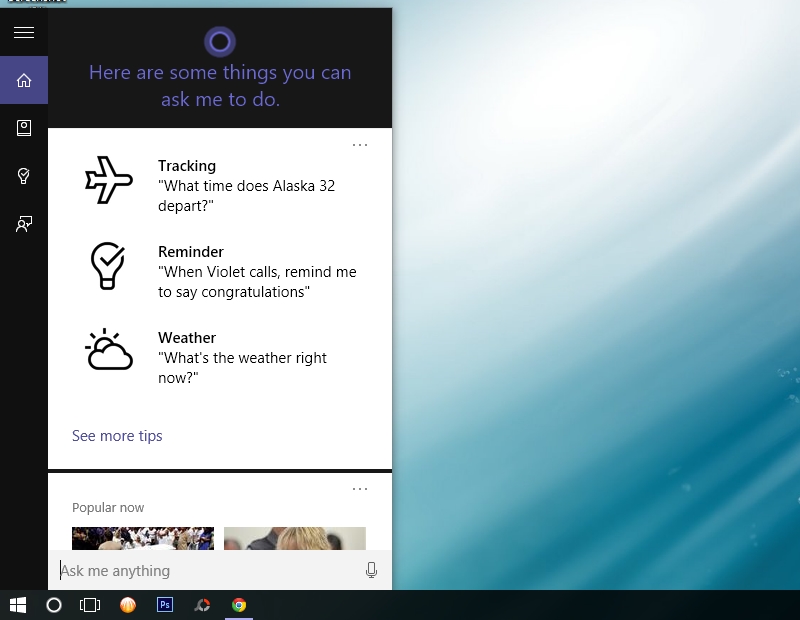 Cunoscută încă de pe terminalele Windows Phone, Cortana sosește acum și în varianta desktop Windows 10. Asistentul virtual cu origini în seria de jocuri Halo, ne răspunde foarte rapid la toate întrebările a căror răspuns dorim să îl aflăm. Cortana ne spune și bancuri, poate seta remindere, dar și cânta o melodie odată ce îi dăm comanda vocala “Cortana sing me a song”.