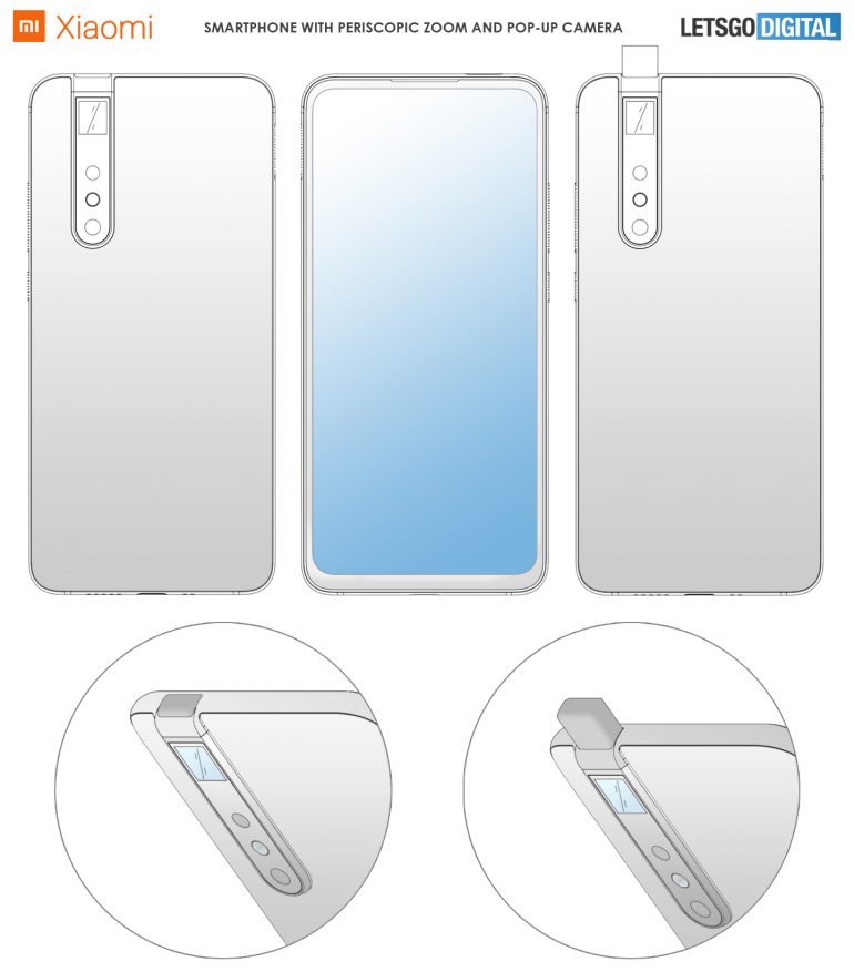 Xiaomi lucrează la ceva de gen şi pe lângă brevet a apărut şi cod în MIUI 11 care face aluzie la zoom optic 5X via camera telephoto şi zoom digital 50X. În plus este menţionată şi captura video 8K la 30 FPS. Revenind totuşi la brevet, el a fost acordat de către o autoritate din Europa unei ramuri Xiaomi din Beijing. Vedem aici o cameră verticală în spate, care are atât obiectivul pătrat asociat periscopului pentru zoom, cât şi secţiunea pop up pentru camera selfie.