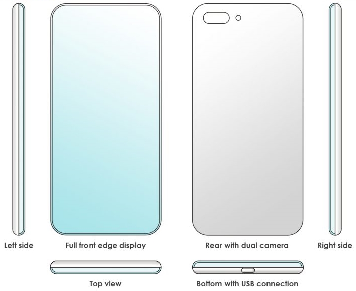 Schițele descoperite de către Letsgodigital.org ce sunt afișate în acest articol scot la iveală un telefon cu ecran edge-to-edge și muchii ultra-înguste ale panoului frontal, aproape invizibile chiar. Este menționat faptul că display-ul este curbat spre toate cele 4 laturi și această caracteristică ne este prezentată și în planul lateral din care vedem handset-ul.