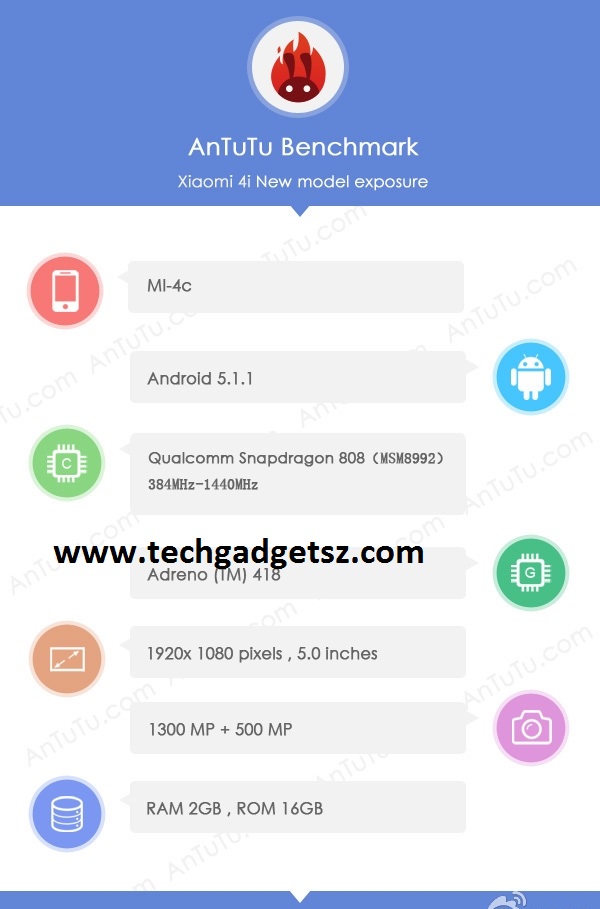 Terminalul a primit recent certificarea TENAA şi a trecut şi prin benchmarkul AnTuTu, care i-a confirmat un nou procesor la bord. Xiaomi Mi 4i venea cu un procesor Snapdragon 615, care pe modelul Mi 4c e înlocuit cu un Snapdragon 808, se pare. În plus, noul venit rulează Android 5.1.1 şi ar putea sosi cu MIUI 7, în locul lui MIUI 6, care ne-a dezamăgit prin experienţa laggy pe Mi 4i.