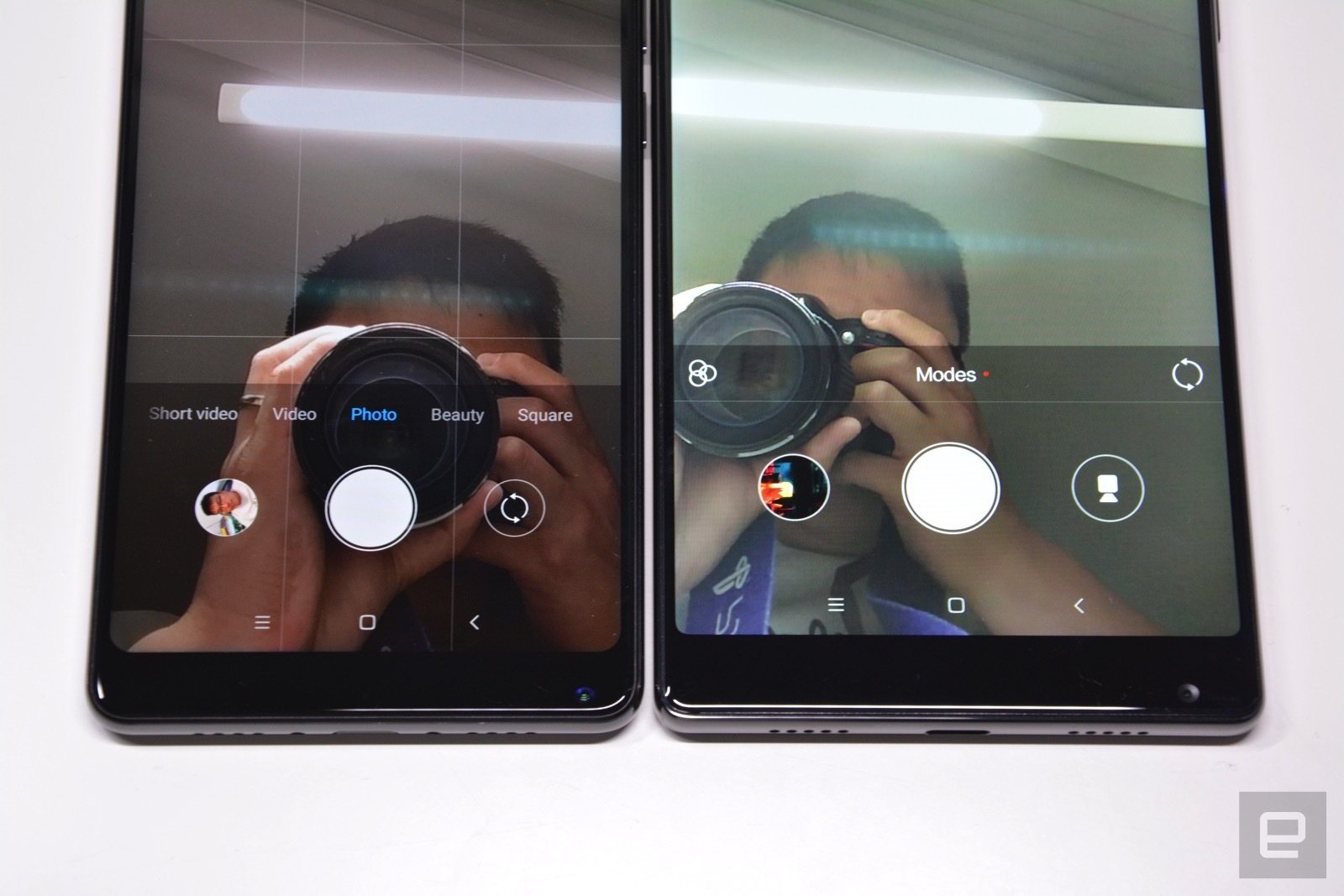 Se ajunge la un raport screen to body de 80.8%, asta în vreme ce ecranul lui Mi Mix ocupa 83.6% din suprafața frontală. Aceste diferențe pot fi remarcate și în fotografiile de aici pe care cei de la Engadget.com le-au realizat. Vedem totuși că bărbia de jos este ceva mai mică și că în jurul senzorului selfie avem o inserție de culoare neagră ce ajută la obținerea unui efect vizual mai plăcut.