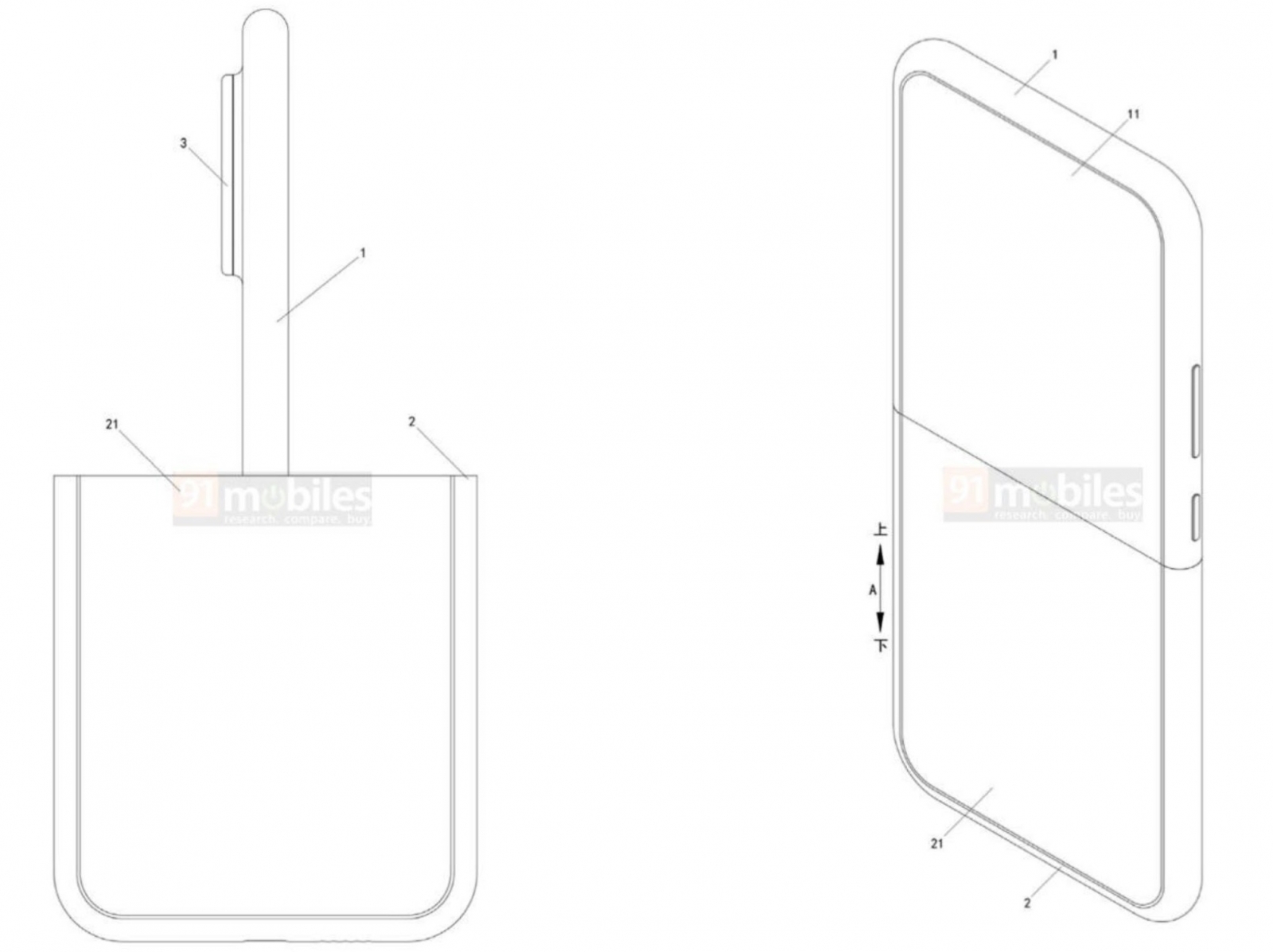 Deocamdată cei de la 91Mobiles au descoperit un brevet de acest tip, la CNIPA (China National Intellectual Property Administration). El aduce cu Xiaomi MIX Flip ca format, doar că jumătatea de sus se poate detaşa. Foloseşte pini metalici, similari cu cei de la tastaturile care se pot ataşa la tablete. În plus, partea de sus, cea care include camerele se poate roti în jurul unei axe, pentru a face poze sau filma.