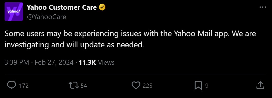 Dacă te afli printre „veteranii” care au încă cont Yahoo Mail, e posibil să fii observat deja că aplicația nu funcționează începând de azi. Ei bine, pe contul oficial x.com (Twitter) a fost postat un mesaj conform căruia problema se va rezolva curând, echipa de tehnicieni investigând în acest moment cauza.