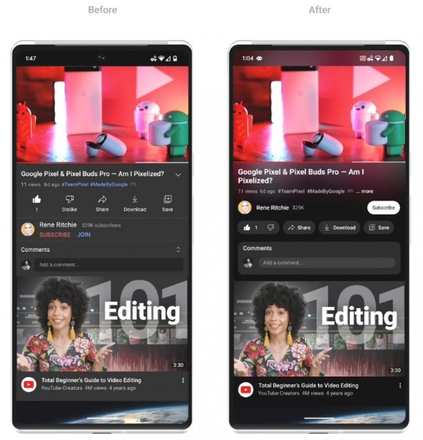 Se pare că YouTube tocmai a împlinit 17 ani de existență, platforma de entertainment video datând din 2005, atunci când primul clip a fost încărcat. Ei bine, aplicația de Android și iOS a primit acum o actualizare importantă care inaugurează un nou design, mai arătos și mai minimalist. În plus, sosesc și noi opțiuni pentru un control mai precis al playback-ului, dar și opțiune pinch to zoom. Detalii avem mai jos.