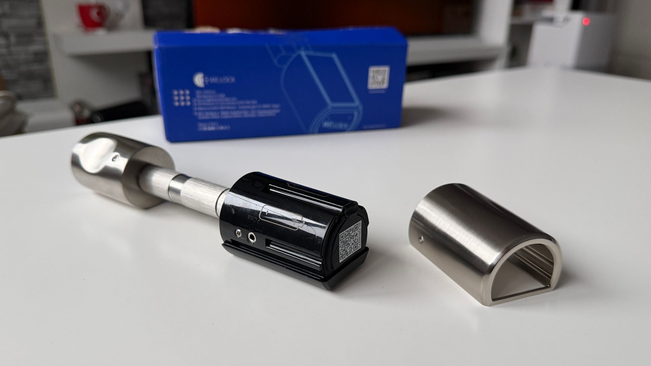 Ca look nu aș zice că acest cilindru iese în evidență cu ceva special, la urma urmei este doar un butuc pe care îl vei ascunde în ușa ta. La vedere va fi doar unitatea exterioară. WELOCK a folosit aici materiale de calitate precum oțel inoxidabil 304, aliaj de zinc și un plastic rigid în zona superioară a keypad-ului. Deasupra sa se află scanner-ul de amprente iar 3 sferturi din acest element exterior este acoperit de o carcasă metalică.