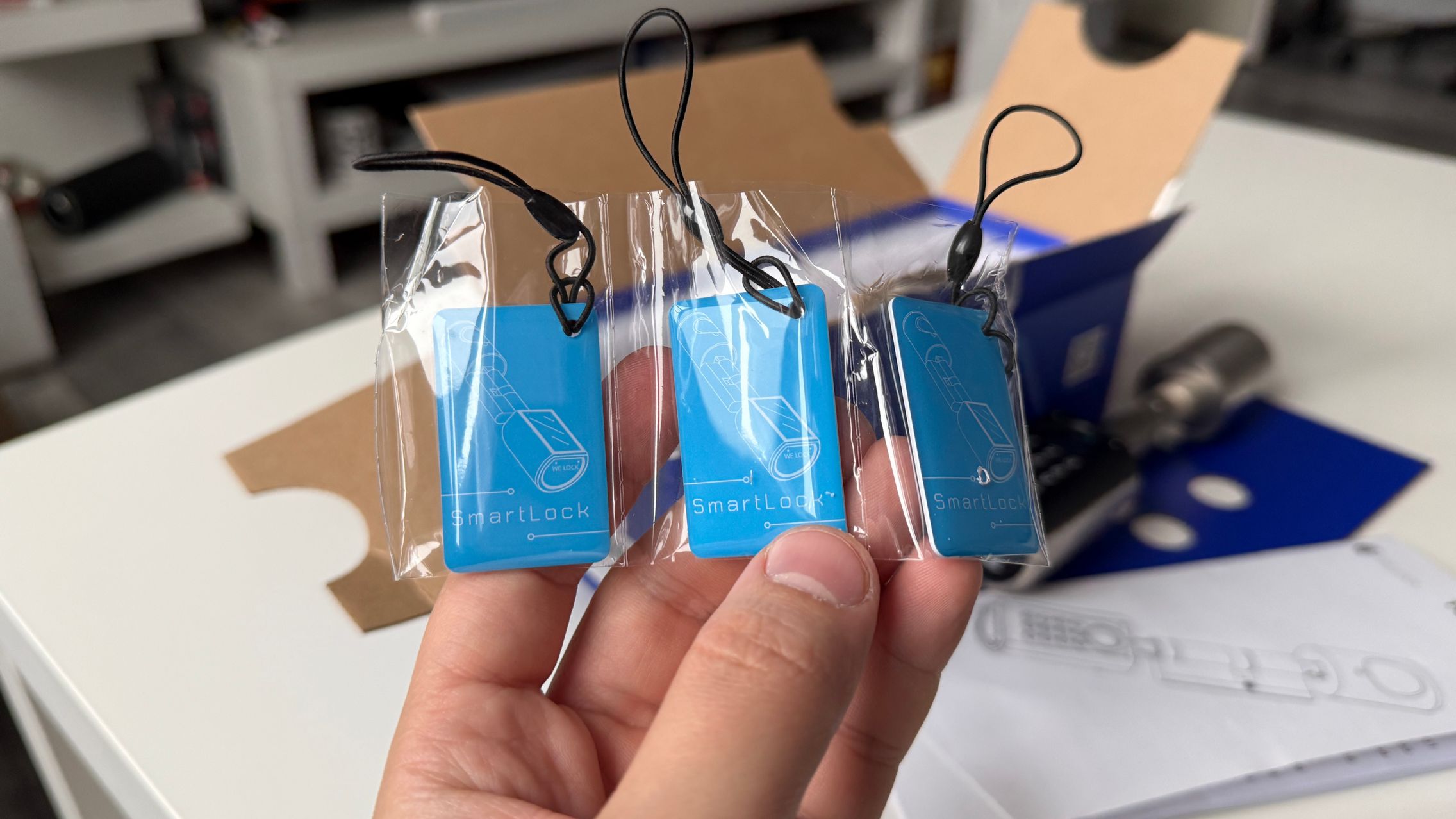 Continuând cu pachetul, am găsit în continuare cilindrul smart, butucul pe care îl vei înlocui la ușa ta. Într-o cutie din plastic separată am dat de șurubele, un imbus și 3 cartele tag pentru deblocare. Simt că am tot ce trebuie pentru a porni la instalare și îmi plac indicațiile clare din manual.