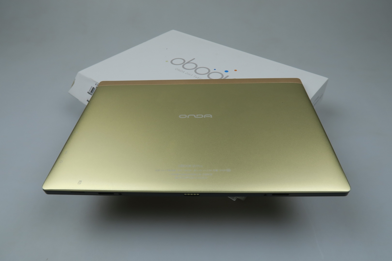 Revenind la tableta Onda OBook 20 Plus, ea optează pentru deja clasicul pachet al "tabletei made în China de sub 200 de dolari", adică 4 GB RAM, procesor Intel Cherry Trail şi 64 GB stocare. Nu avem cameră principală (spate), dar primim camera frontală de 2 MP şi o baterie de 6.000 mAh, plus ecran Full HD de 10.1 inch. E interesant designul acestui model, pentru că privit din profil el este în pantă, cu o porţiune superioară mai groasă şi inferioară mai subţire.