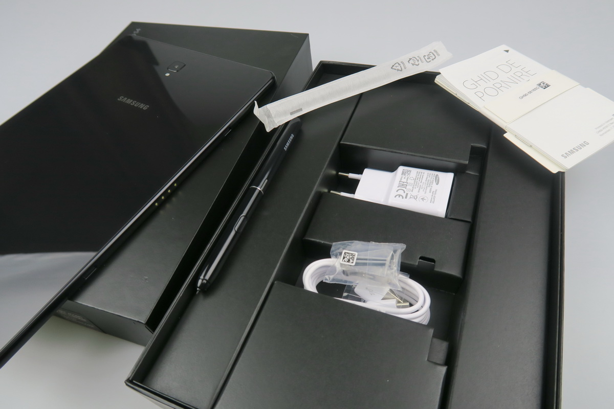 Tableta costă în jur de 3.500 de lei pe piaţa locală şi se poziţionează ca un produs Office/Business/Enterprise dar care la o adică are 4 difuzoare care pot dudui cu filme, concerte şi jocuri. Tableta vine la pachet cu un stylus nou, mai mare şi mai gros decât S-Pen-ul clasic, cu un cleşte pentru înlocuirea vârfului său, dar şi vârfuri de rezervă. Avem şi un manual şi o cheiţă pentru sloturi.