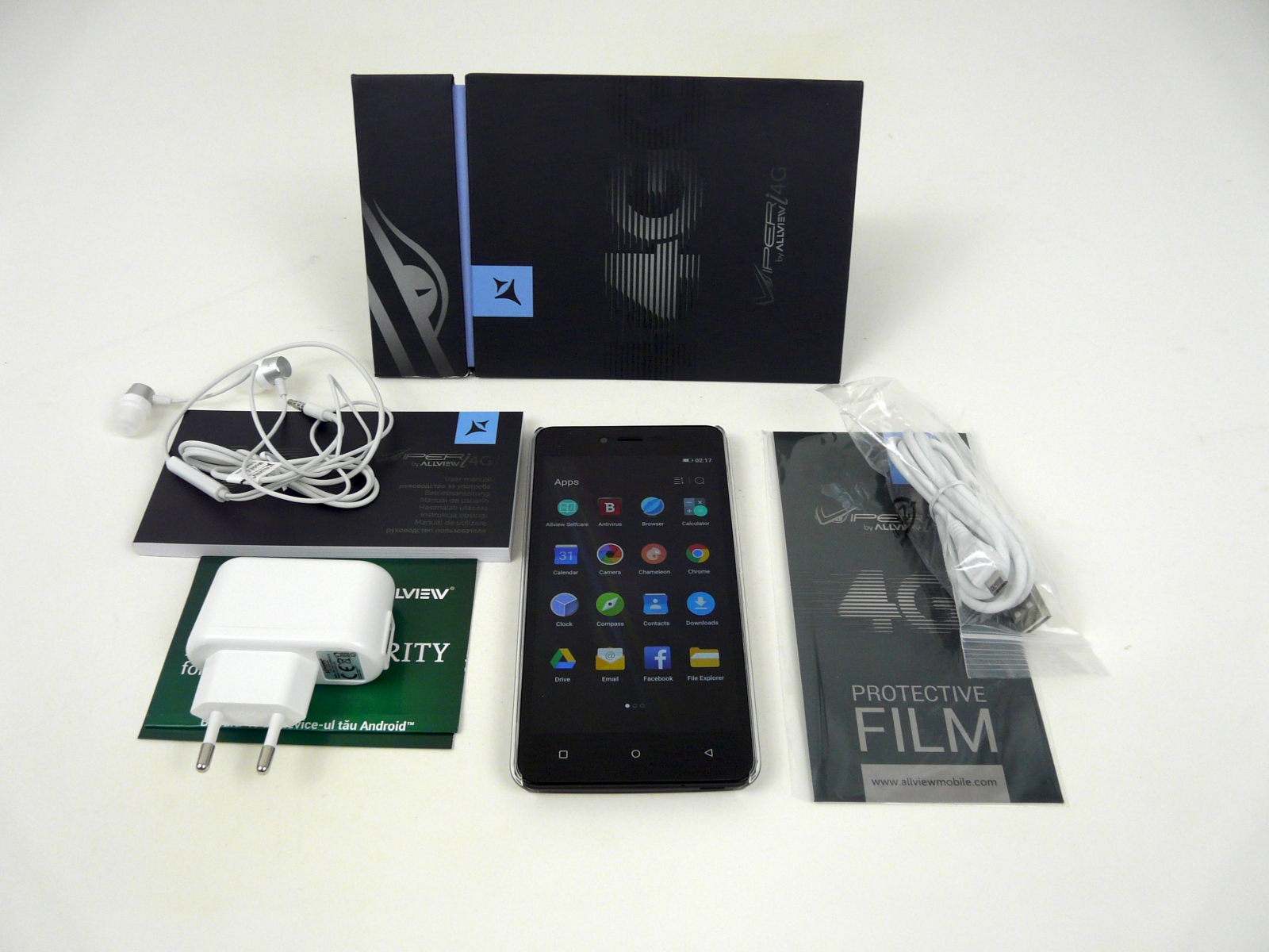 În cutie se află manualul, folia pentru ecran, încărcătorul, cablul USB, căştile şi codul Bitdefender Mobile Security. Avem de-a face aici cu un telefon dual SIM, care măsoară 8.3 mm în grosime şi cântăreşte 144.5 grame. El are un display IPS LCD de 5 inch cu rezoluţie HD, un procesor quad core de 1.3 GHz şi 16 GB stocare.