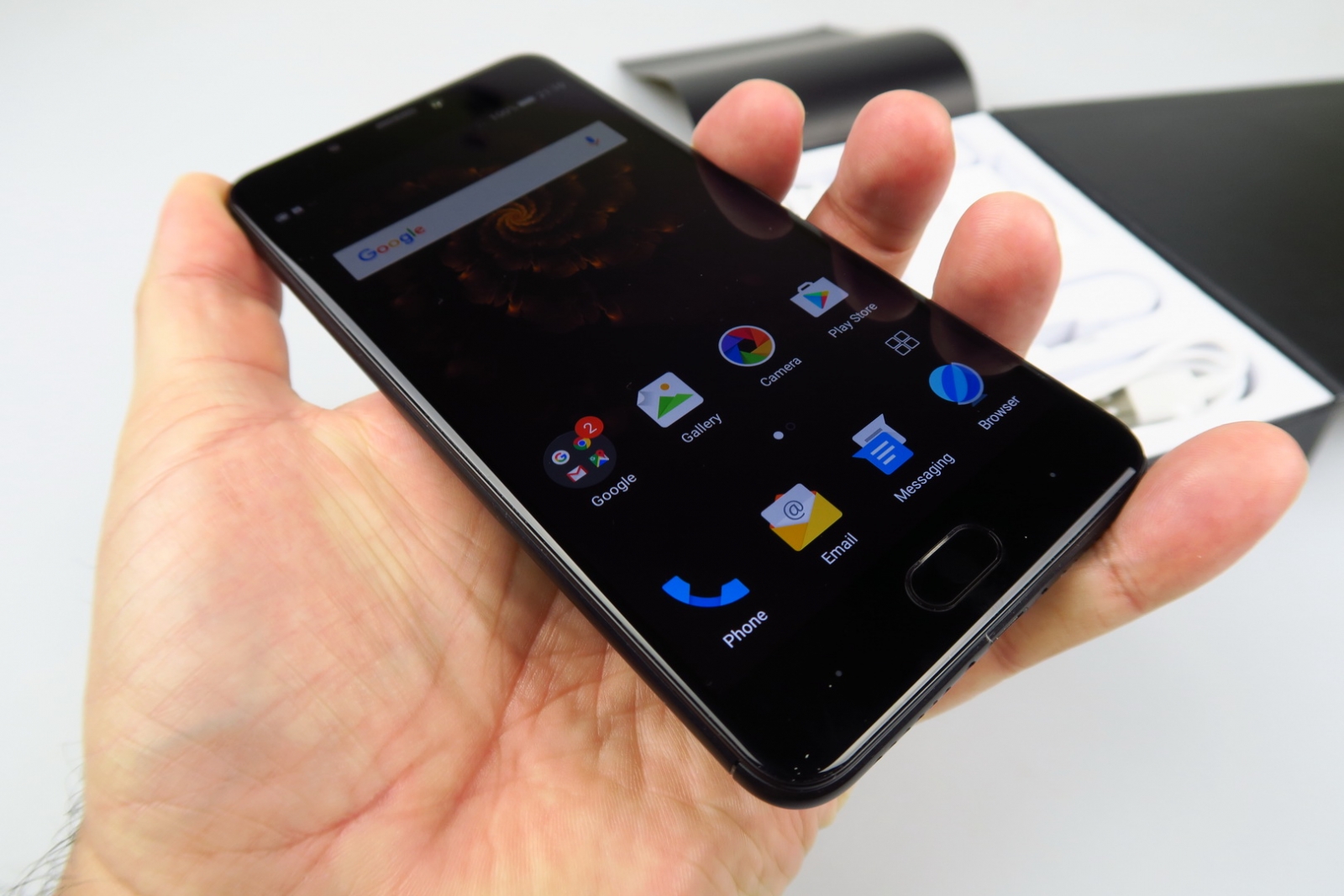 A debutat pe piaţa locală luna trecută şi vine cu o cutie foarte lată şi plată, doldora de accesorii. Vorbesc aici despre o husă transparentă şi flexibilă, despre un încărcător de 9 V şi 2A, care promite încărcare rapidă, dar şi despre o cheiţă metalică pentru accesarea slot-urilor, căşti, şi adaptor micro USB - USB. Evident avem şi cablu USB la pachet, iar pentru cei care se întreabă, e vorba de USB standard şi nu USB Type-C.