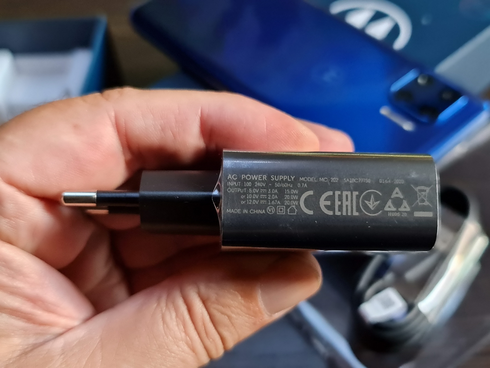 E foarte clar ce vrea să fie acest telefon: rival pentru LG Velvet, Oppo Reno 3 Pro 5G, Motorola Edge, OnePlus Nord. Face parte din noua clasă de "telefoane super high midrange" din 2020, despre care am tot scris, doar ca tine preţul mult mai jos. Revenind la cutie, în ea găsim telefonul, cu o husă din silicon aplicată deja, dar şi un cablu USB-C la USB-A, manualul, cheiţa pentru sloturi şi încărcătorul de 20W cu conector USB-A şi alimentare până la 12V şi 1.67A.