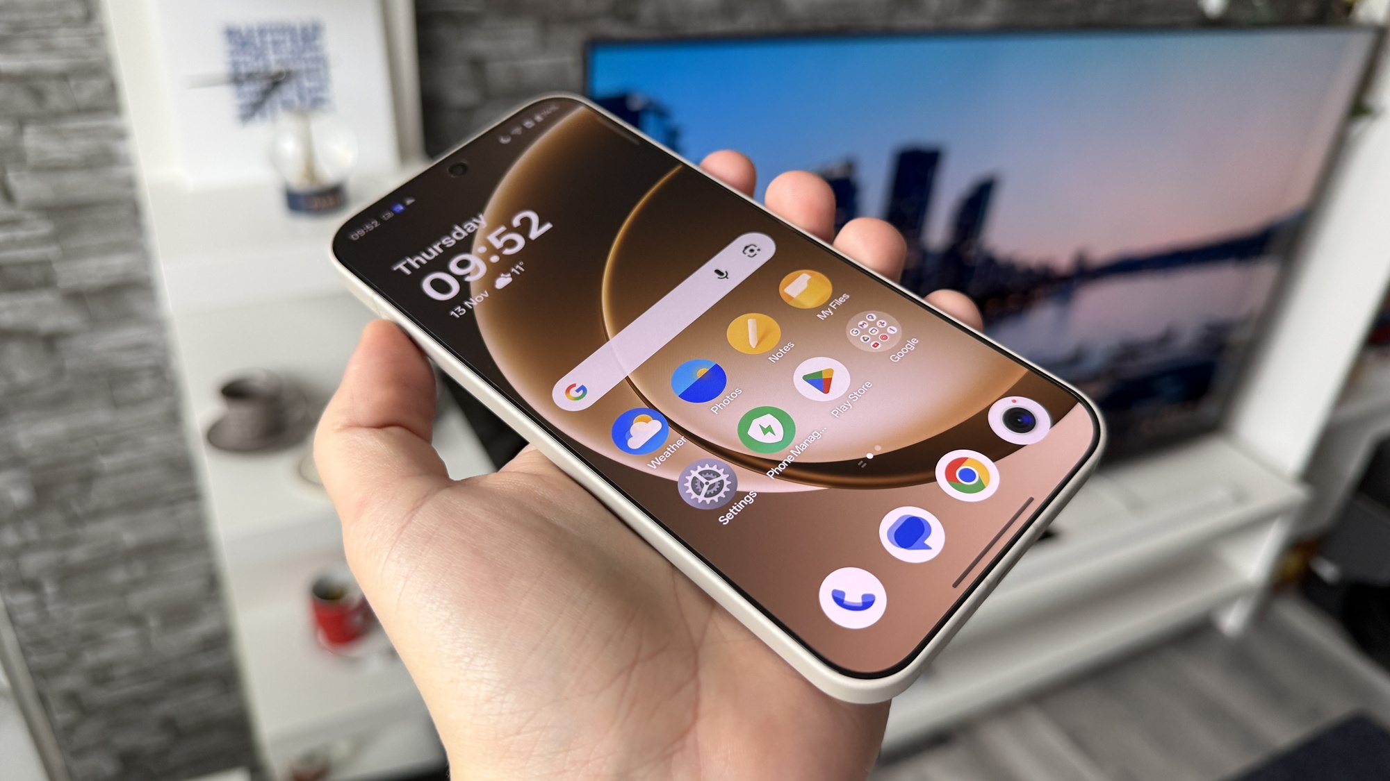 Rama e din aluminiu şi telefonul are protecţie Gorilla Glass Victus 2 pentru ecran şi certificare IP68/IP69K pentru corp. Se descurcă şi cu jeturile de apă de înaltă presiune, scufundarea în apă până la 2 metri adâncime timp de 30 de minute. Rama plată îl ajută la priza şi pare surprinzător de compact, pentru ce ecran mare are.