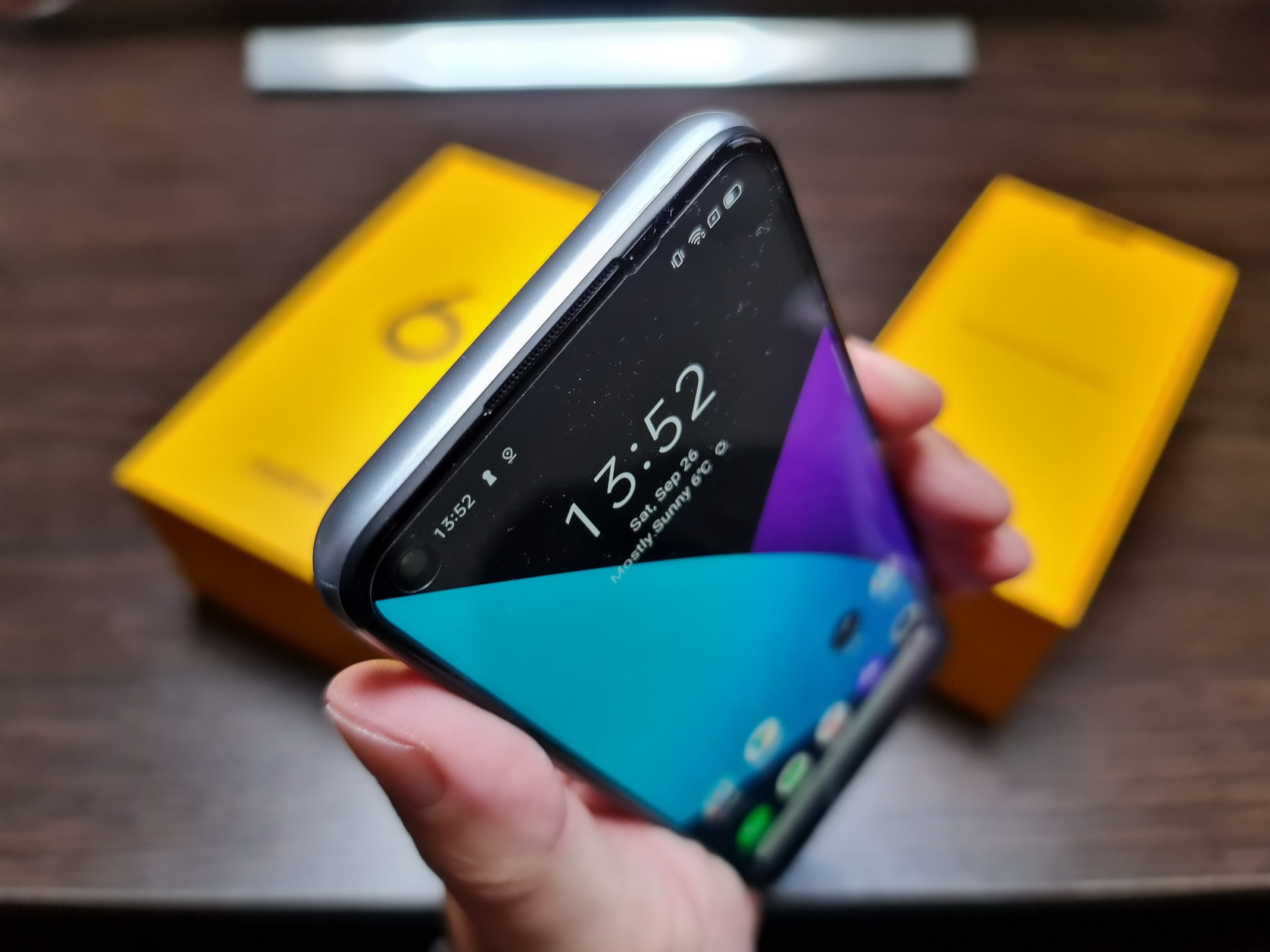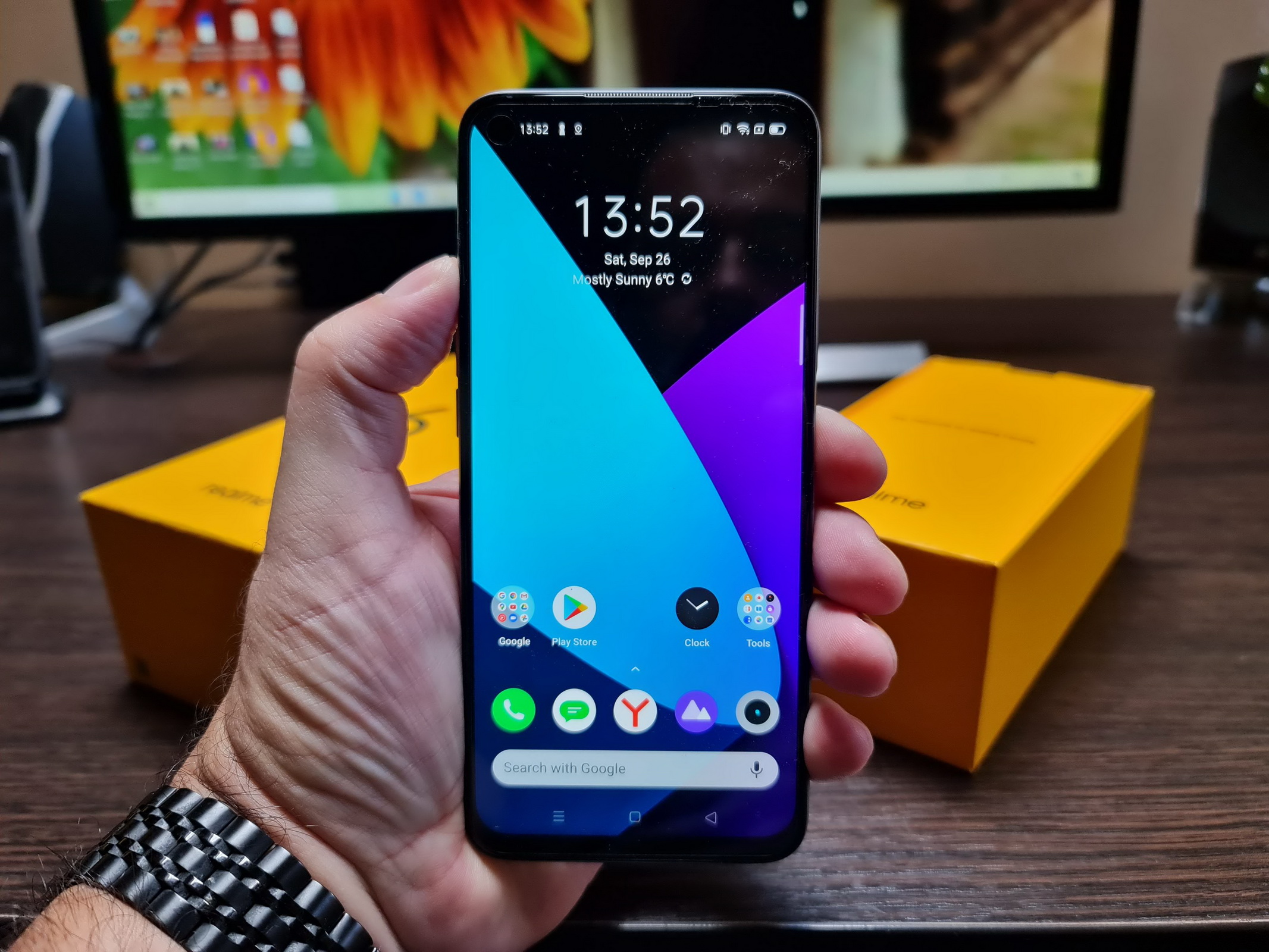 Filmează în 4K la 30 FPS şi are şi bliţ LED, aducând şi captură AI, mod Night, Portrait şi o interfaţă minimalistă. Pe partea de conectivitate avem jack audio, WiFi dual band, Bluetooth 5.0, GPS, un port USB-C. Cititorul de amprente se află integrat în butonul Power lateral, cel plat. Ca OS primim Android 10 cu Realme UI peste, aducând un pic cu ColorOS de la Oppo.